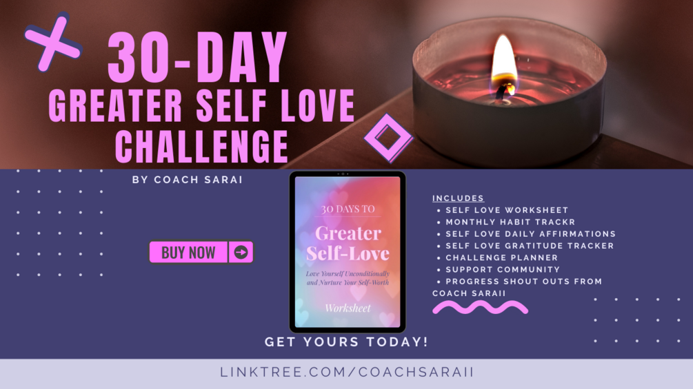Join the 30 Days to Greater Self-Love Challenge if you are tired of feeling like you give, give, & give to everyone else EXCEPT yourself! Join this Challenge if you are ready to glow brighter than anyone has ever seen you! This challenge is for you if you are ready to be completely unbothered by petty people, problems, and things that threaten your peace, and focus only on your glow up.